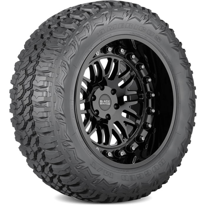 The Americus Rugged M/T is a premium high-void mud pattern with large shoulder blocks for deep traction and crisp handling in on-road / off-road conditions. The self-cleaning tread has “thunder-bolt” stone ejectors. The joint-less spiral nylon over-wraps provide extra toughness and 3-ply body plies (in larger sizes) helps protect against sidewall impact. The Rugged M/T is backed by our No Questions Asked, 25/365 Free Replacement Limited Protection Policy.